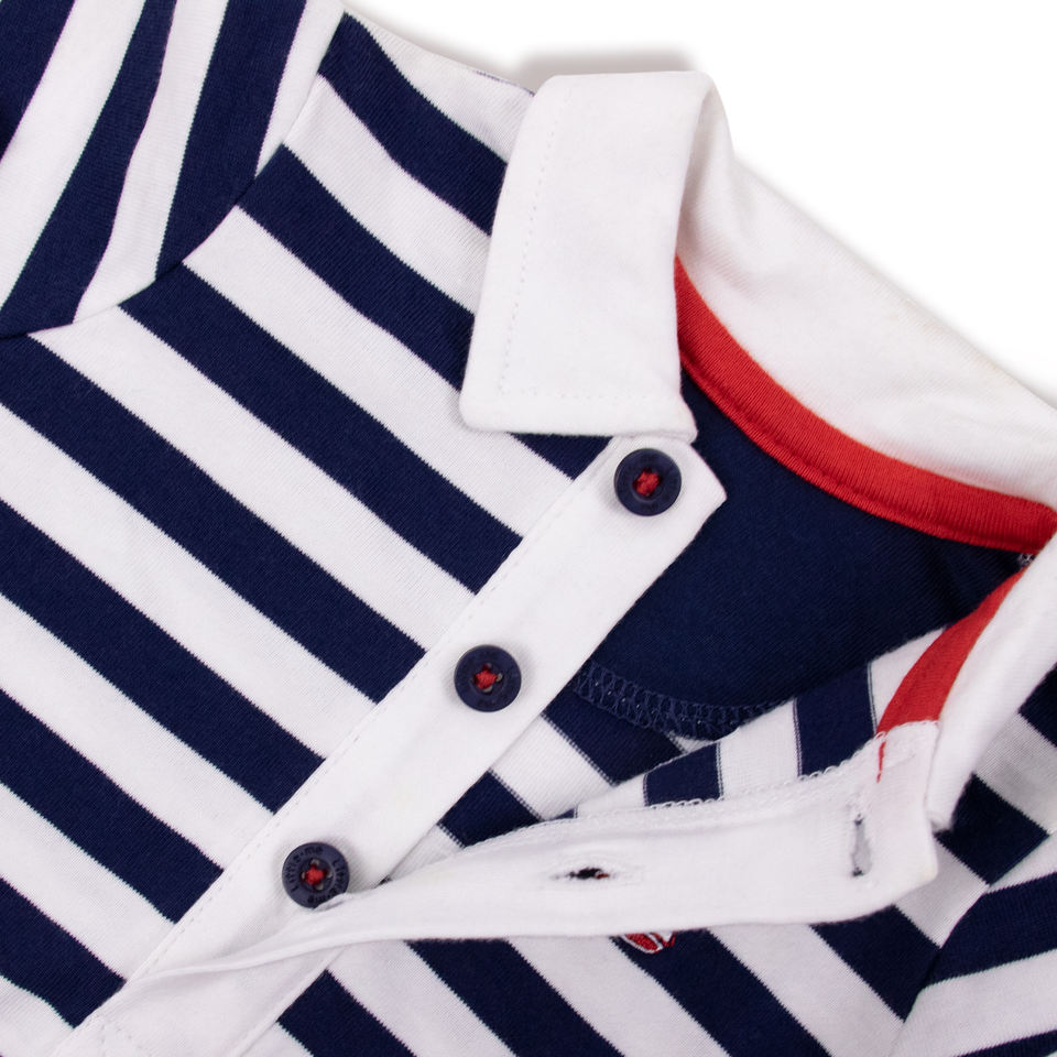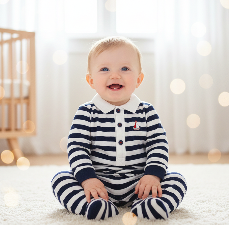 Premium Baby Sailor Romper Soft Blue Stripe with Embroidery Sailboat