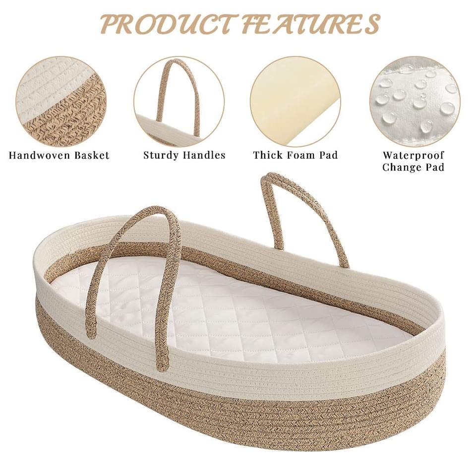 Premium Baby Changing Basket - Handwoven Baby Changing Station with Soft Thick Pad and Waterproof Cover