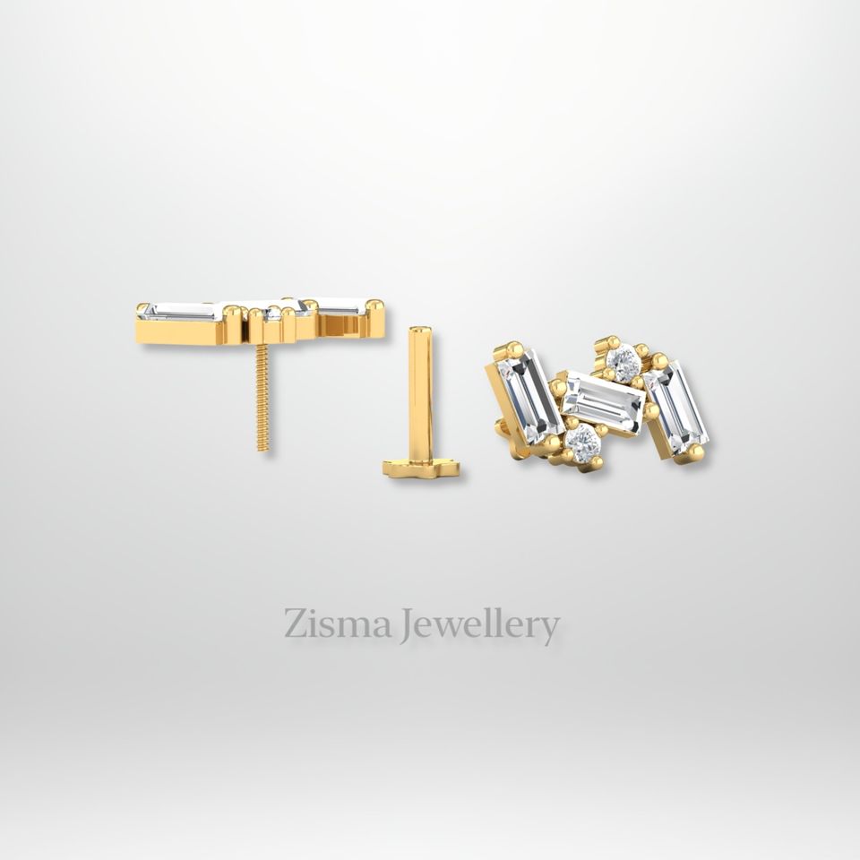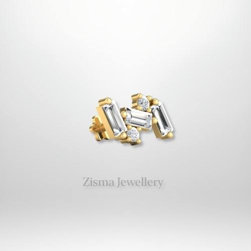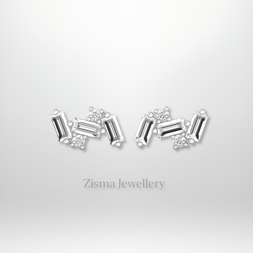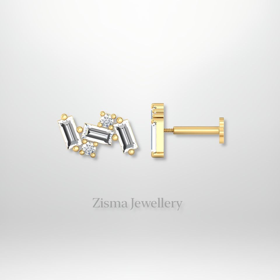 Premium Baguette Cluster Diamond Stud Earrings 14K Gold Plated Natural Diamonds Lobe Piercing Jewelry GIA Certified Women's