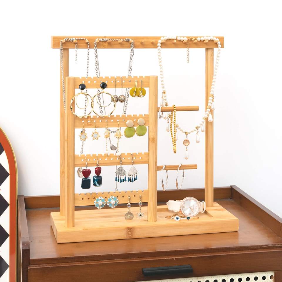 Product Name:Bamboo Wall Mount Jewelry Holder Stand and Earring Holder
