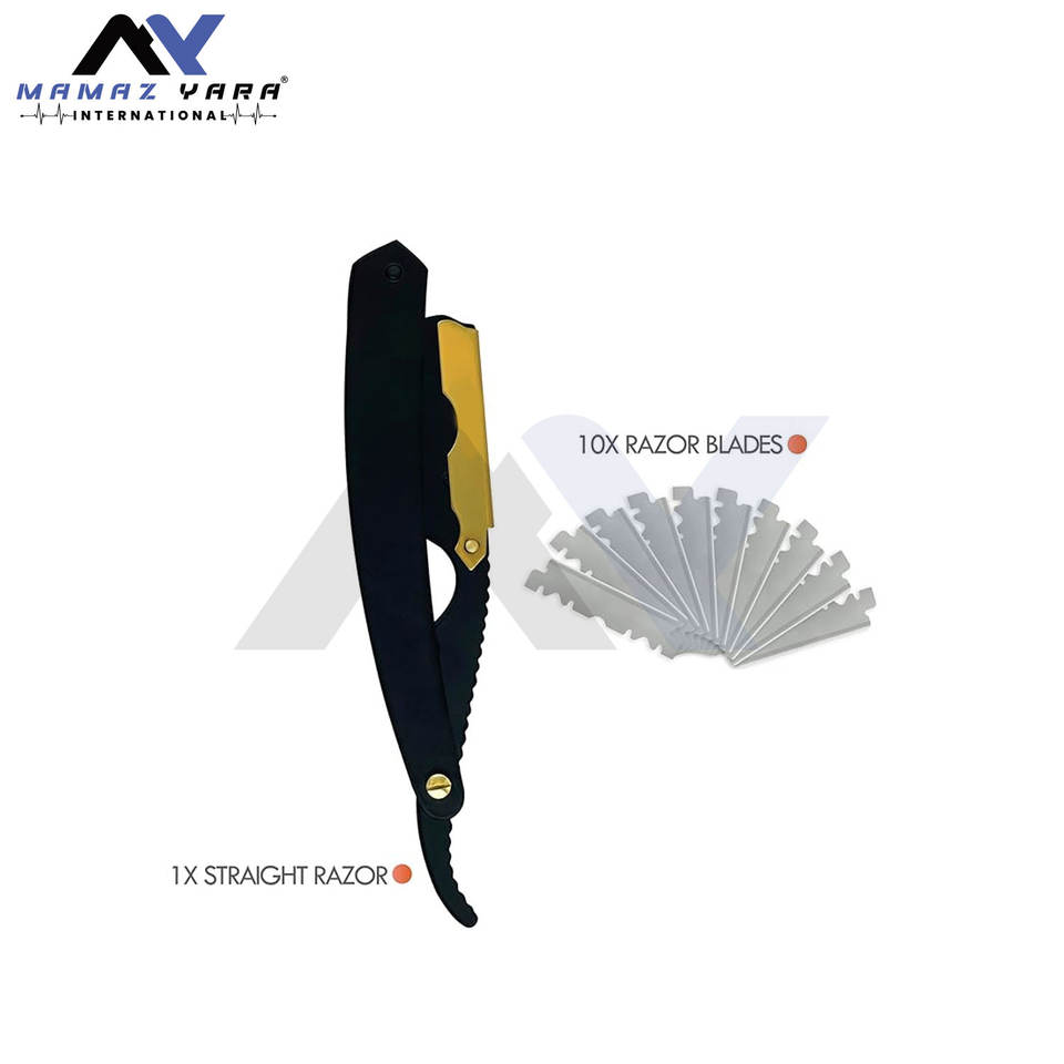 Premium Barber Straight Edge Razor With 10 Blades Mens Manual Shaver Salon Quality Professional Grooming Razor Black Smooth