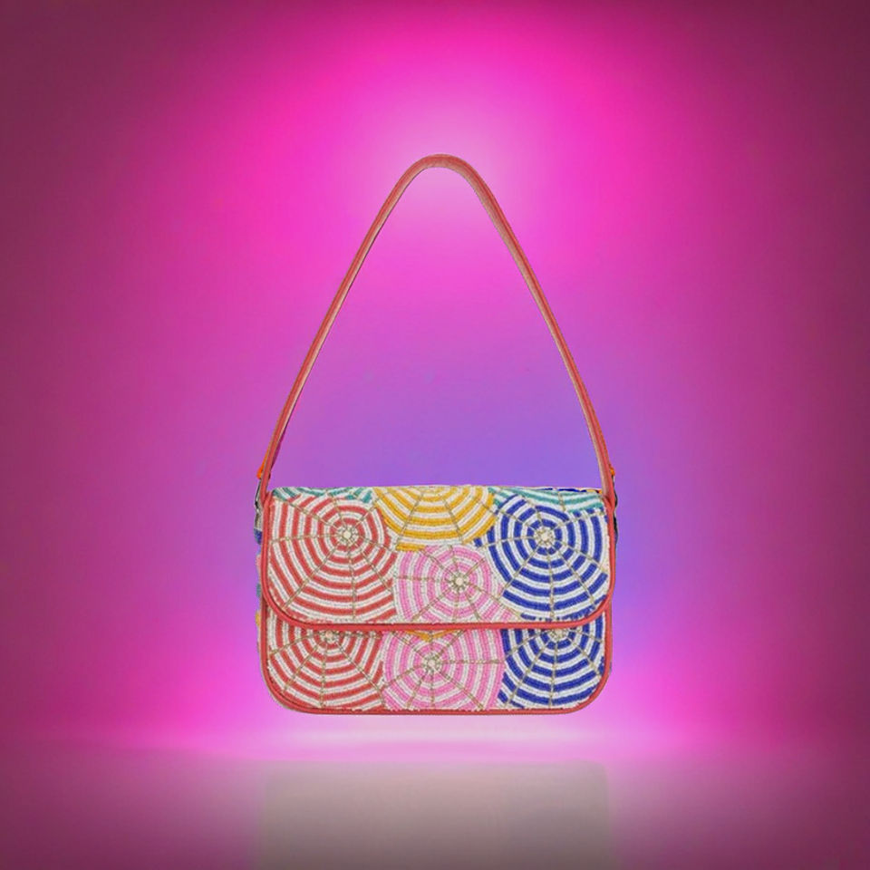 Premium Bhiomina Traditional Design Custom Beaded Strawberry Design Shoulder Bag Pink Pearl Clutch Handbag for Women and Girls