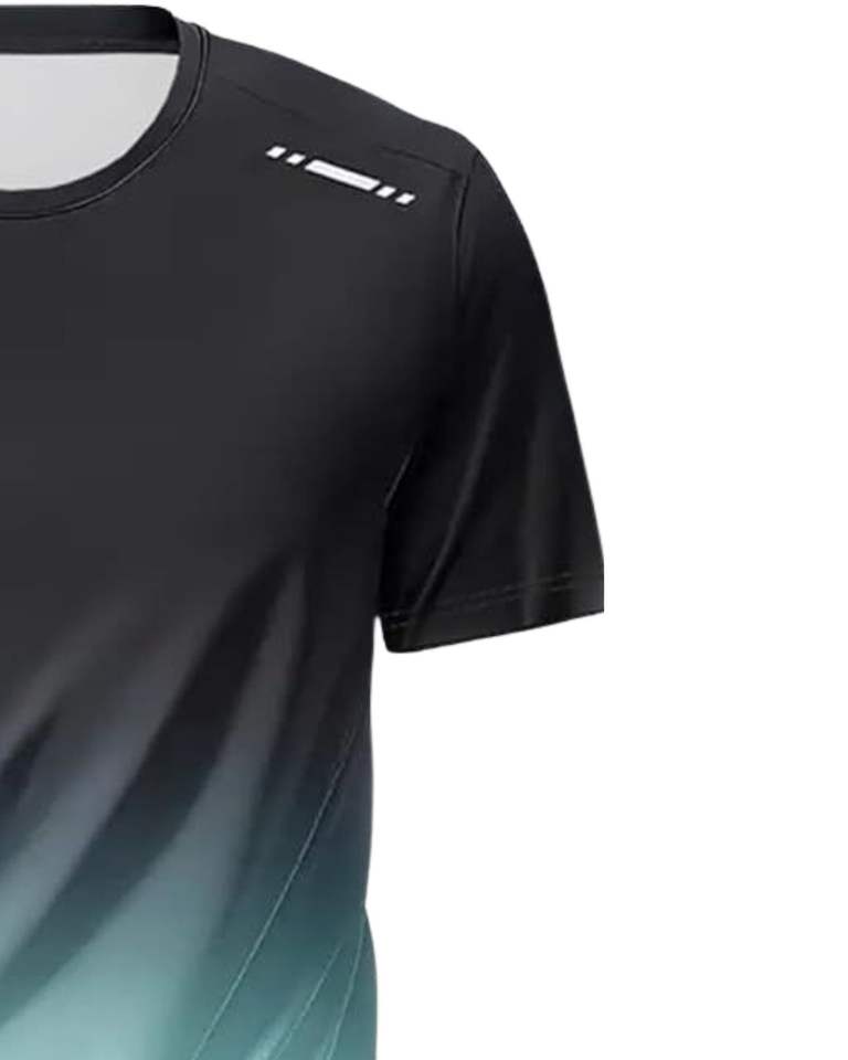 Premium Black And Mint Green Mens Sports T Shirt Short Sleeve Crew Neck Athletic Gym Wear Breathable Training Top