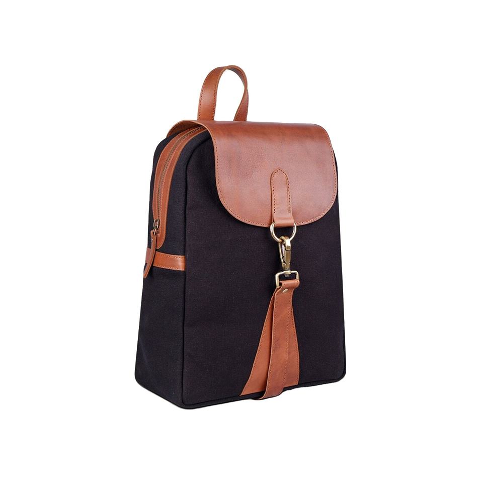 Premium Black Canvas Leather Flap Backpack for Women and Teenage Girls Small College Overnight Bag pack