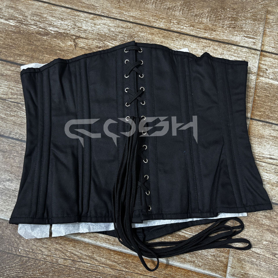 Premium Black Cotton Underbust Corset 24 Spiral Steel Boned Waist Trainer Short Torso Corsetry
