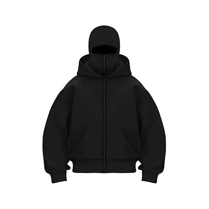 Premium Black Full Face Zip Up Mask Hoodie for Men and Women Oversized Warm Streetwear Techwear Style Jacket Sweatshirt EditionX