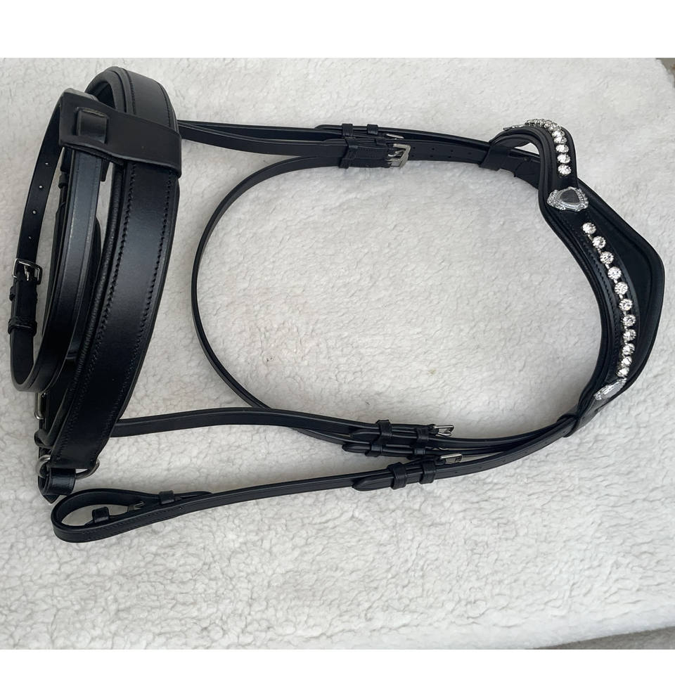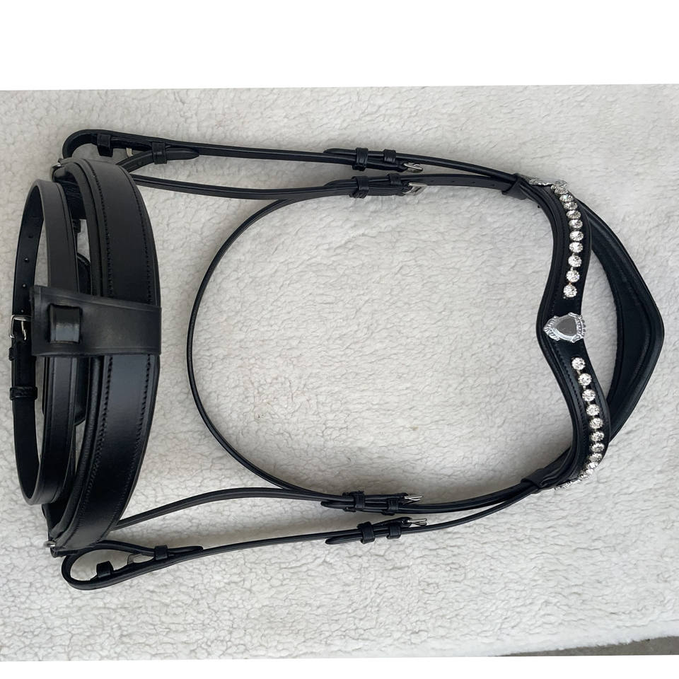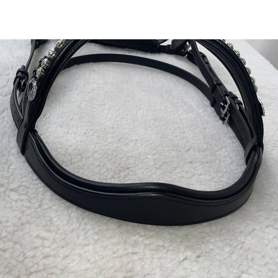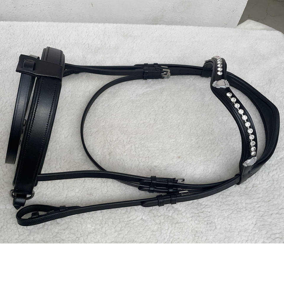 Premium Black Leather Horse Bridle with Padded Noseband & Crystal Brow band Adjustable English Riding Horse Equipment
