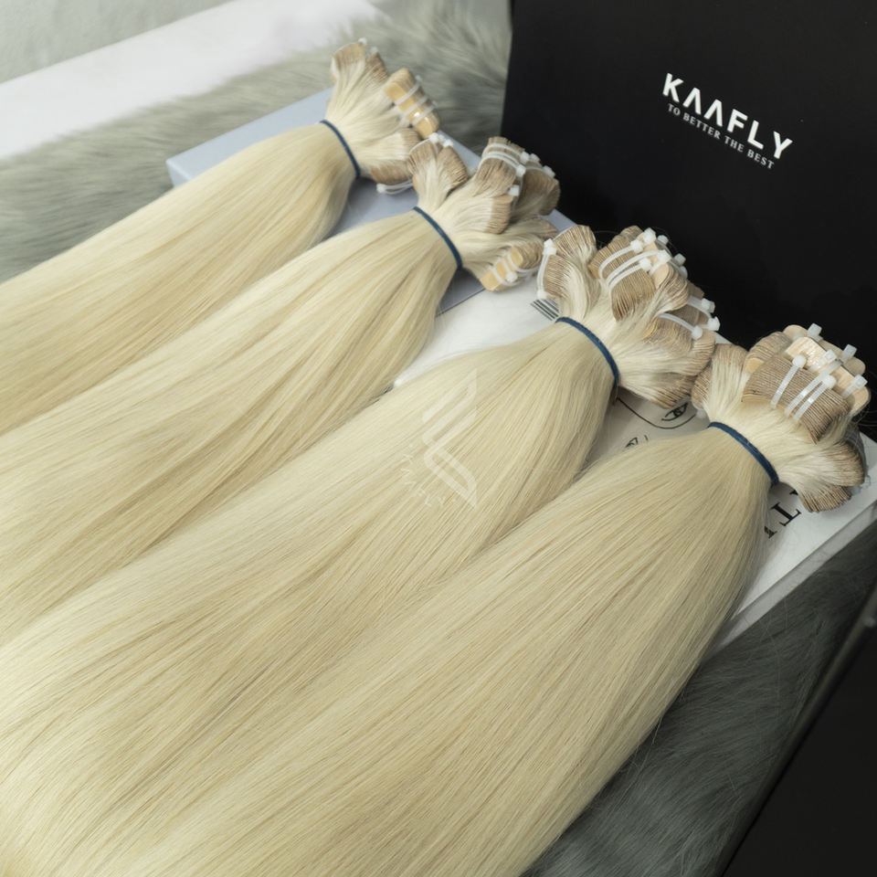 Premium Blonde Platinum Fumi Tape Hair Extensions European Hair 40 Inches Virgin Remy Bleached Dyed