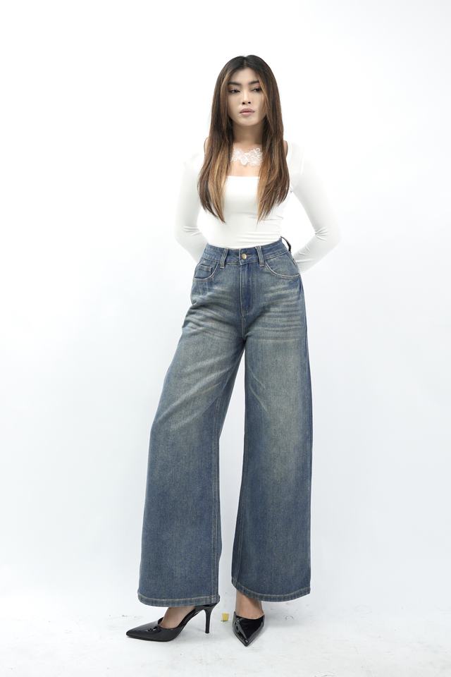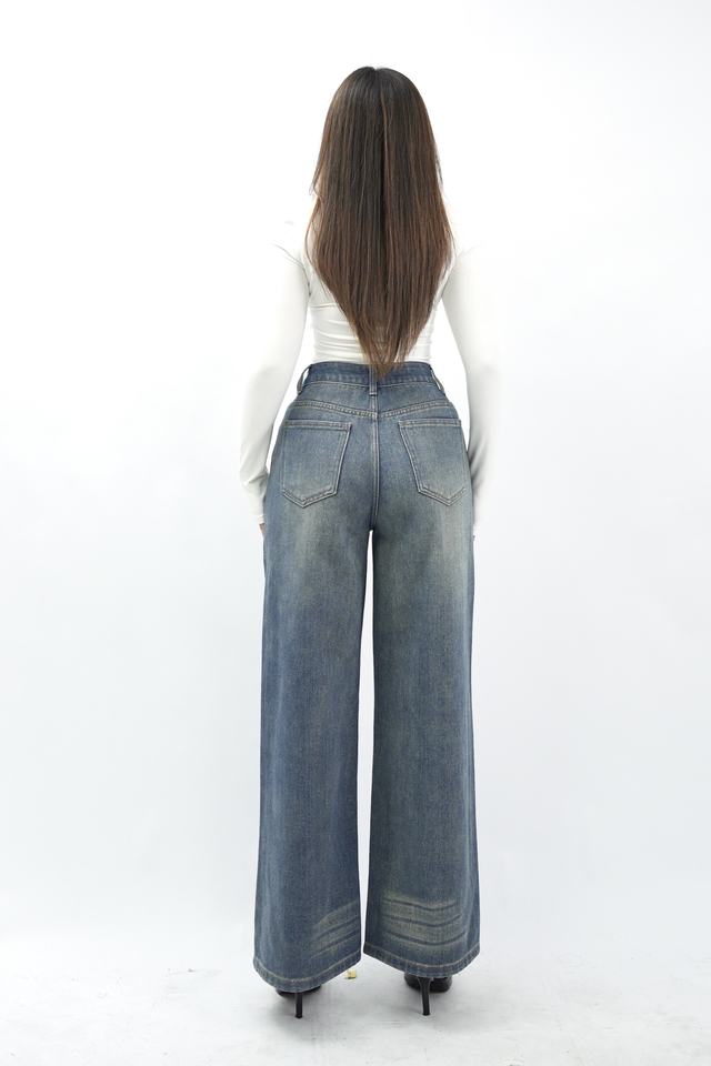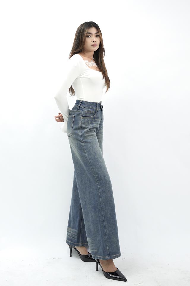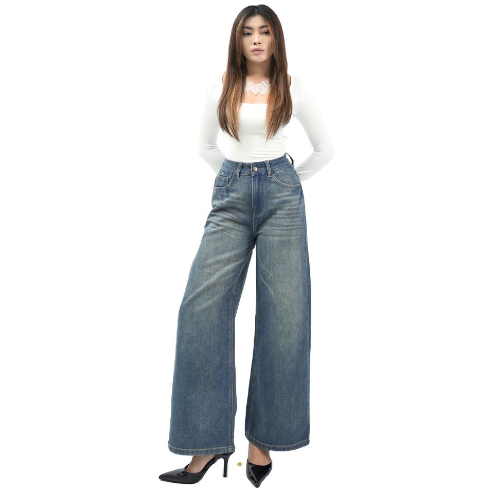 Premium Blue Highwaist Wide Leg Denim Jeans 8834 Breathable Comfort Versatile Modern Chic for Everyday Style
