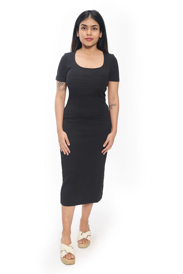 Premium Bodycon Dress for Women with Half Sleeves and Scoop Neck Below Knee Length Spandex Fit Ideal for Party and Casual Wear