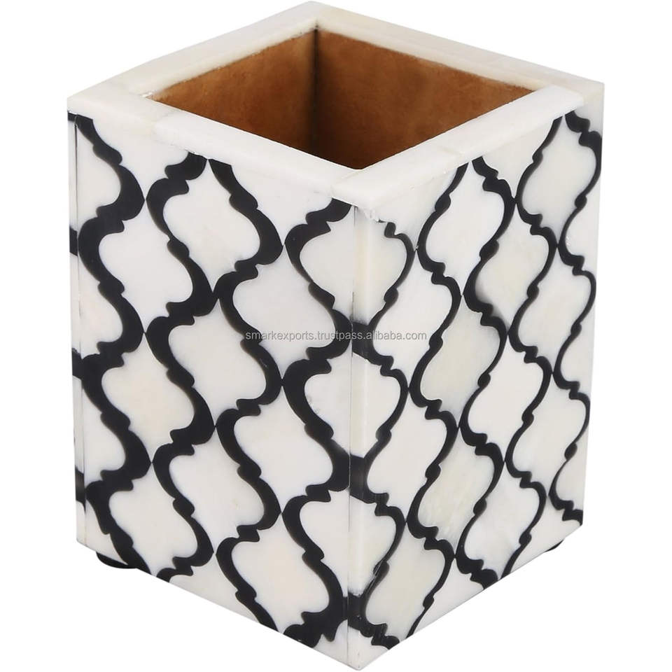 Premium Eco-Friendly Bone Inlay Handmade Desk Organizer Stylish Pencil Stand Office Stationery Holder Decorative Brush Pot