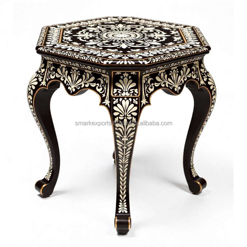 Premium Bone Inlay Round Wooden Table Handmade Floral Design Luxury Home Furniture for Classic Interior Decoration
