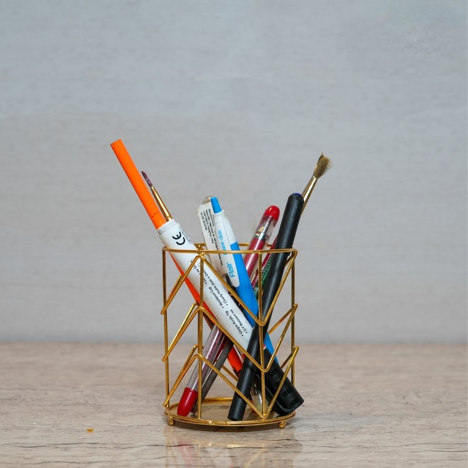 Premium Brass Art Deco Hanging Pen Stand Office Table Organizer Vintage Handmade Desk Decor Classic Stationery Holder