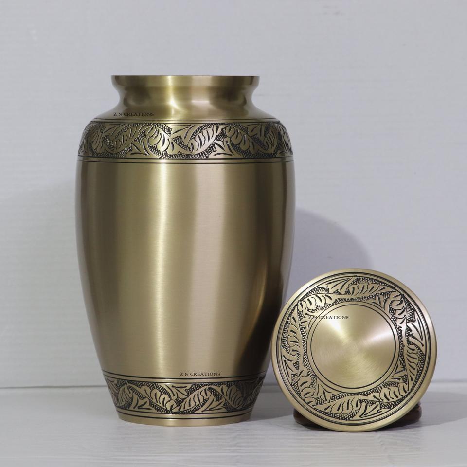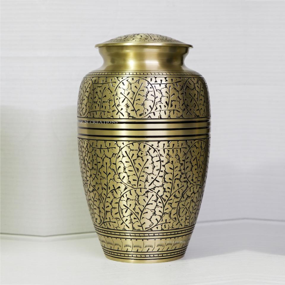 Premium Brass Hand Engraved Cremation Urns for Human Ashes Customized Brass Urn Handcrafted Brass Adult Ashes Urns Wholesale