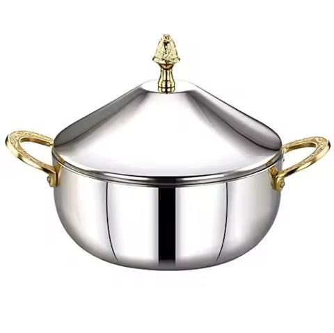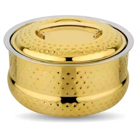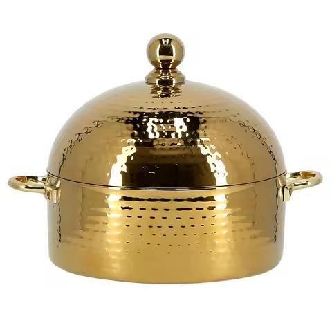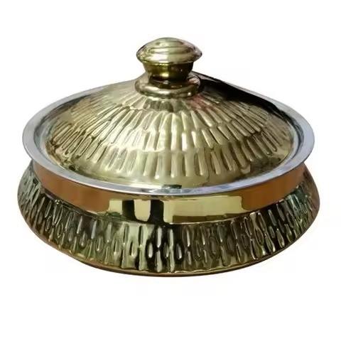 Premium Brass Metal Warm round Casserole Dish Hot Pot Insulated Food Server for Kitchen Dining Hotel and Restaurant Use