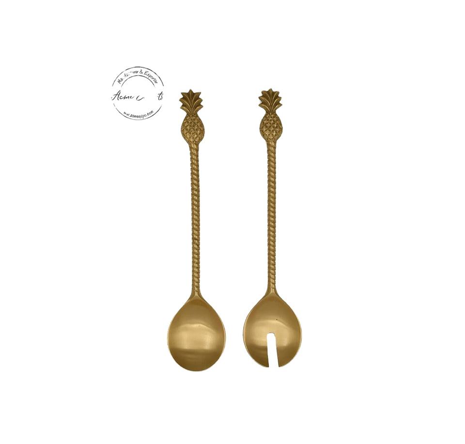 Premium Brass Pineapple Design Salad Serving Spoon Set Stylish Gold Finish Durable Flatware for Dining and Kitchen Use