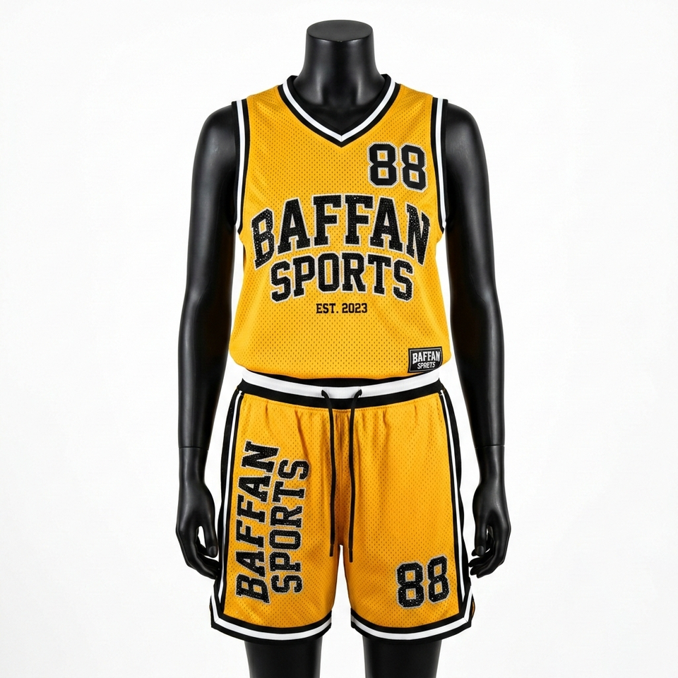 Premium Breathable Polyester Mesh Short Set Yellow Black Rib Stripe Panels Custom Sublimation Logo Sports Uniform Women's Sets