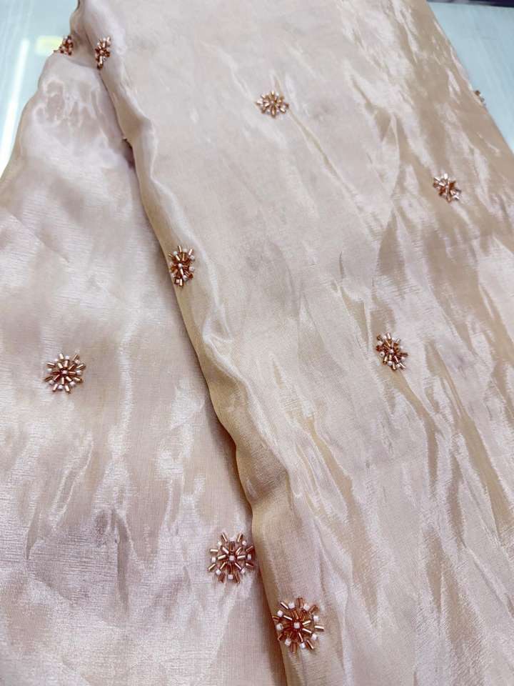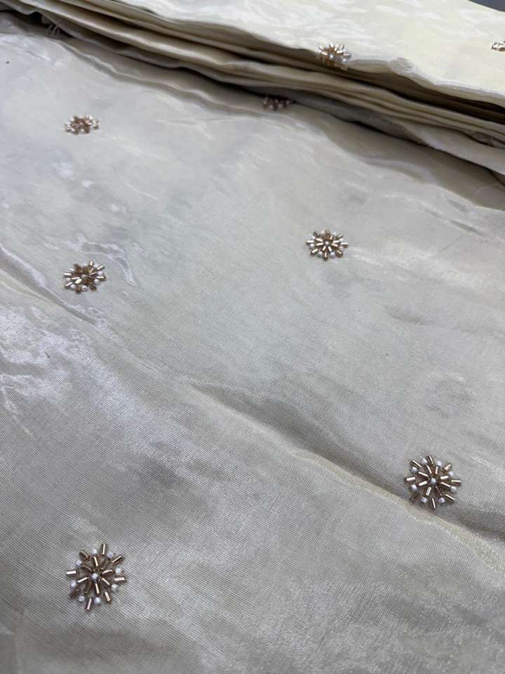 Premium Breathable Quick-Dry Eco-Friendly Printed Woven Viscose Cosmos Simmer Tissue Original Beads Embroidery Fabric Khushi