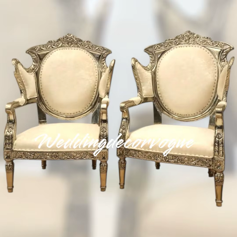 Premium Bride Groom Throne Chairs for Wedding Event Dining and Stage Decor Leather Upholstery Royal Design Sofa Set