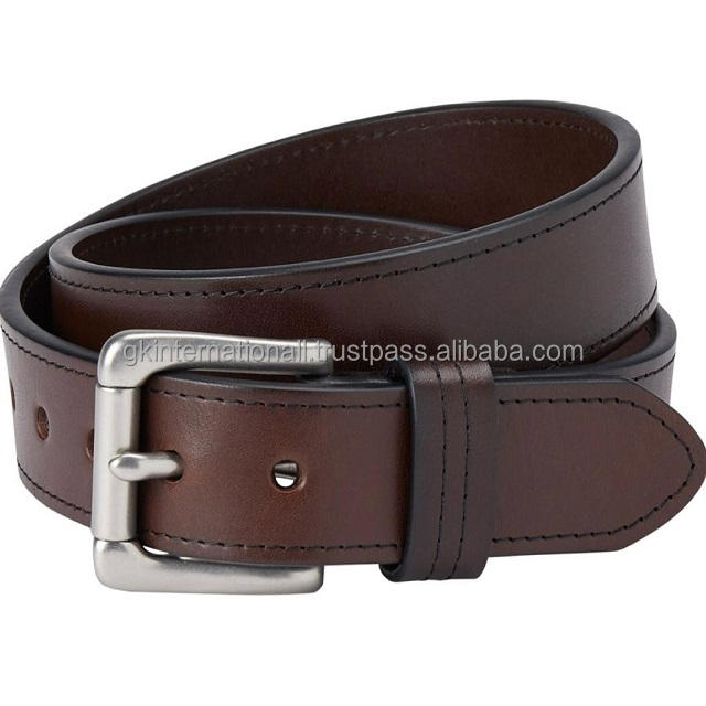 Premium Brown Harness Leather Casual Belt for Unisex in All Custom Sizes and Colors with Silver Matt Roller Pin Buckle Set