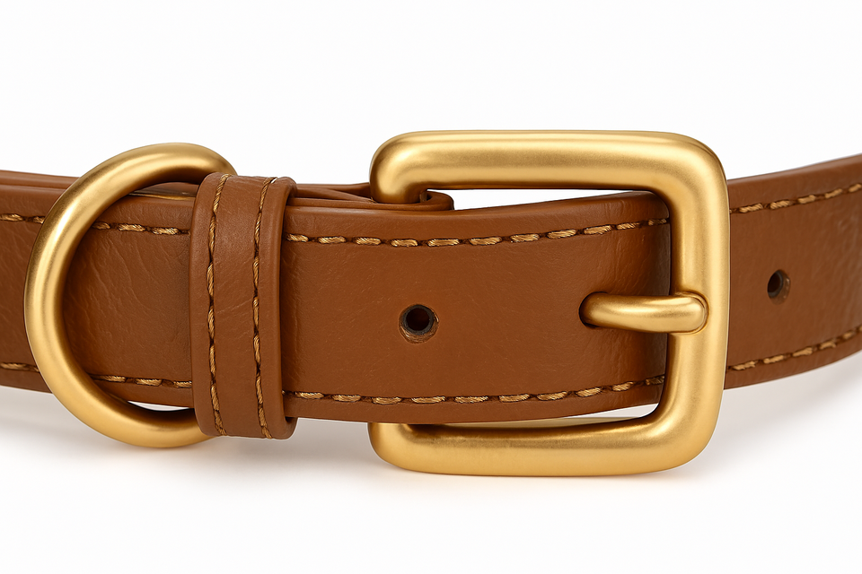 Premium Brown Leather Pet Collar with Gold Buckle & D-Ring Handcrafted, Adjustable, Durable | Divine International