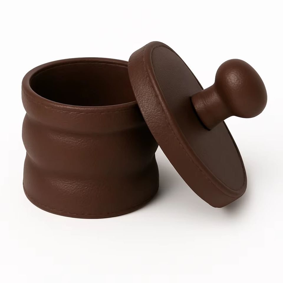 Premium Brown Leather Storage Jar with Lid Hot Selling New Arrival Wholesale Price Durable Elegant Design for Home or Office Use