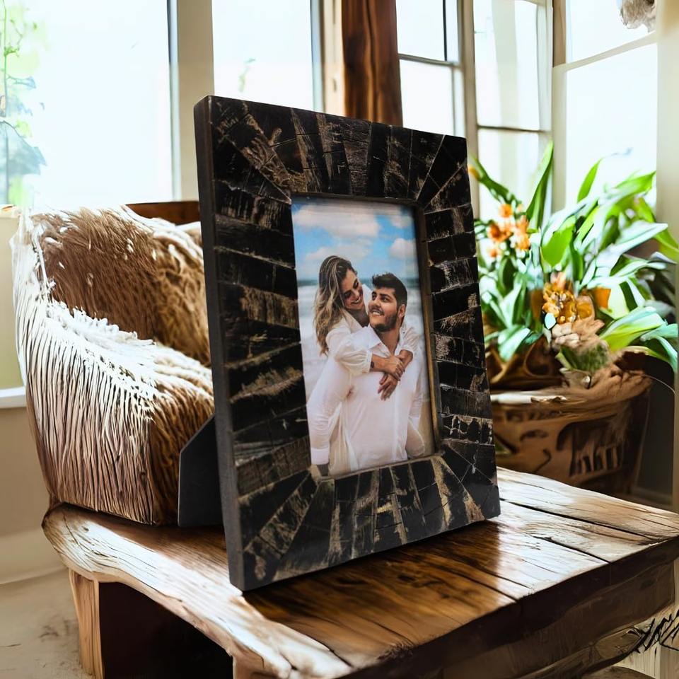 Premium Buffalo & Ox Horn Photo Frame Durable Stylish Metal And Wood Wall Table Decor