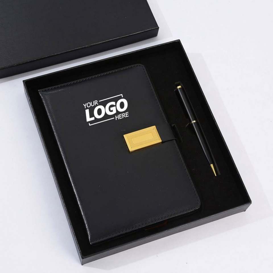 Premium Business Journal Gift Set Custom Brand PU Leather Notebook Metal Clasp Digital Printing-Perfect Corporate Gift Giveaway