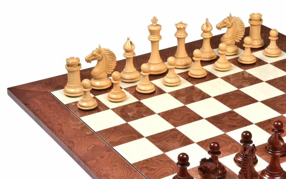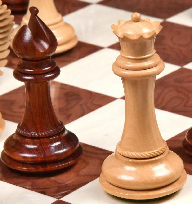Premium CB Mustang Series Weighted Wooden Chess Pieces Bud Rosewood Boxwood 4.4 Inch King Extra Queens
