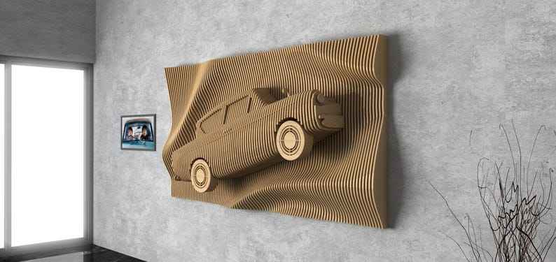 Premium CNC Project Parametric Wall Panel 67 Flying Car Design Wavy Wooden Decor for Cutting Machines