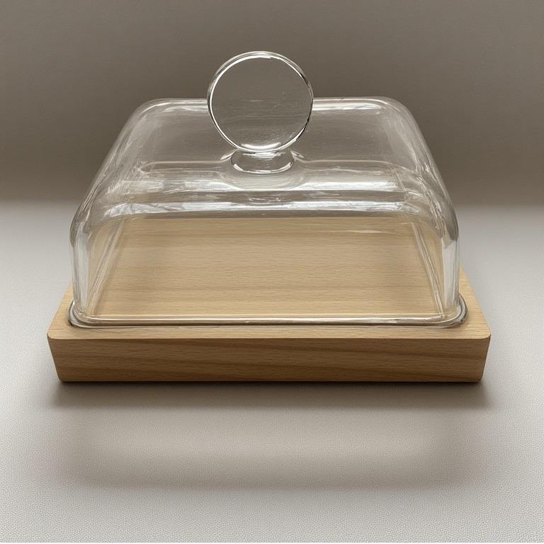 Premium Cake Dome With Clear Glass Cover And Solid Wood Base Artisan Handmade Offering Decorative Accent For Elegant Dessert