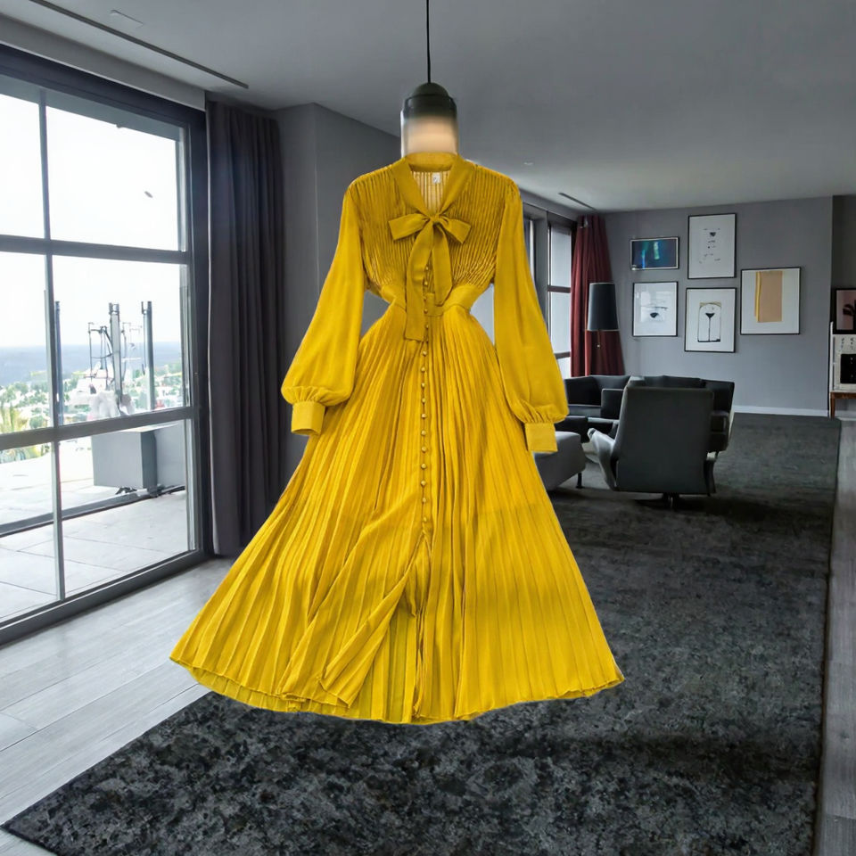 Premium Casual Turn-down Collar Eco-Friendly Polyester/Cotton Vintage Floral Print A-Line Pleated Design Elegant Large Dress