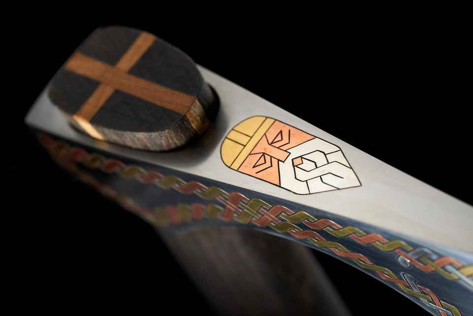 Premium Celtic Axe. Viking-Style Bearded Blade with Warrior Design Battle Axe Inlay Wire Material: Silver, copper, and brass.