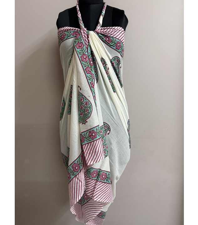 Premium Chic Flowy Cotton Sarong Body Wrap for Women with Breathable Soft Fabric Hand Block Printed Sun Protection Beachshawl