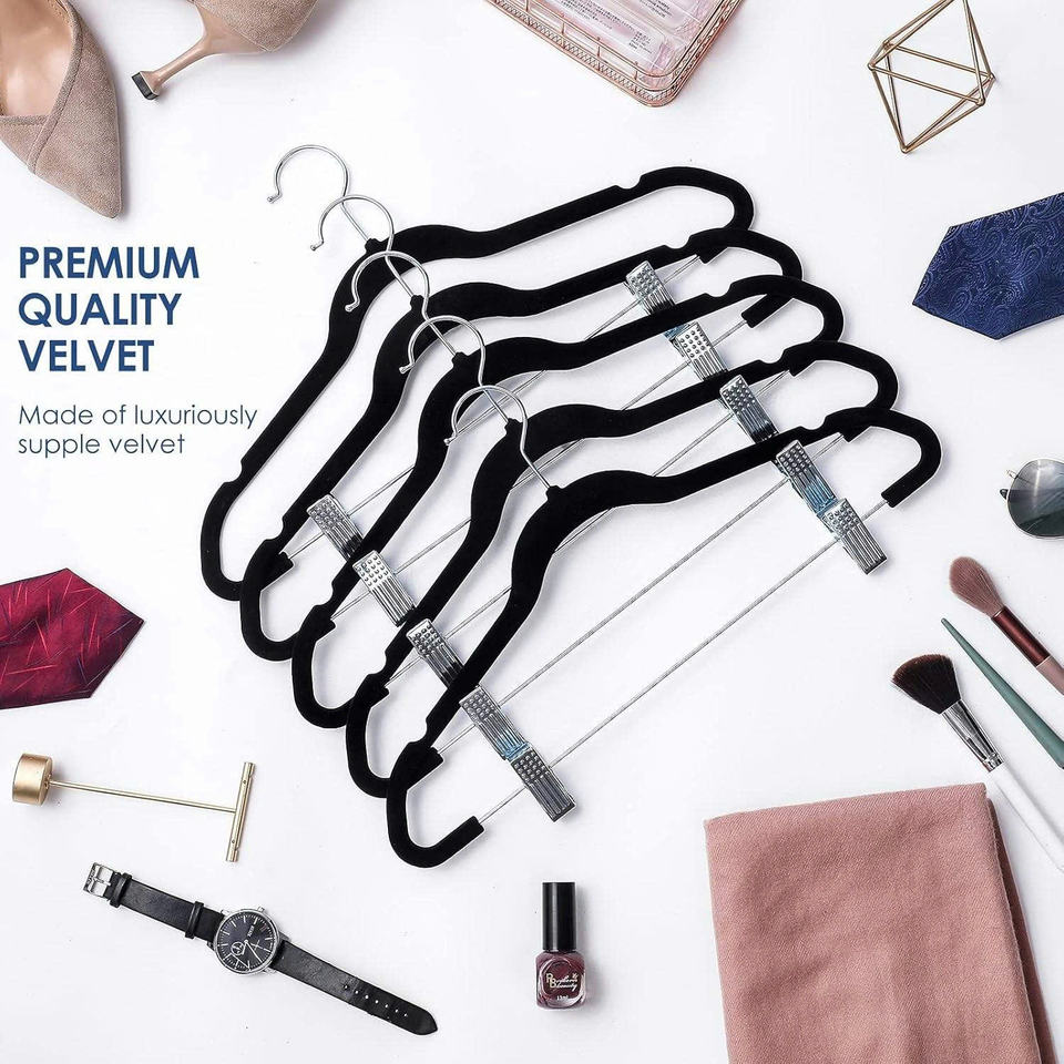 Premium Classic Black Velvet Clothes Hangers Clips Non Slip Flocked Design Saving Single Tier for Hotel Store Wardrobe Iron