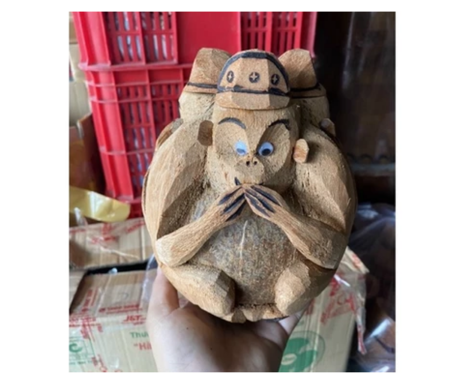 Premium Coconut Monkey Sculptures - Handcrafted Coconut Monkey Coco Shell Art, Authentic Coconut Animal Ornaments from Vietnam