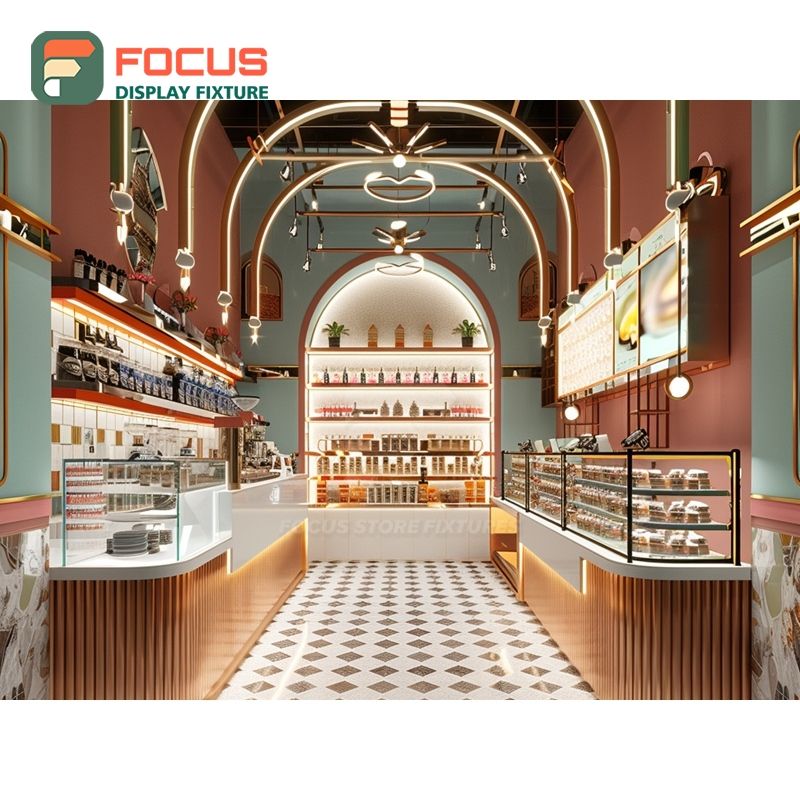 Premium Coffee Merchandise Display Rack White Panel Finish Coffee Bean Display Area Coffee Merchandise Rack