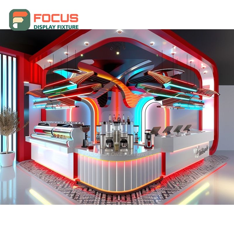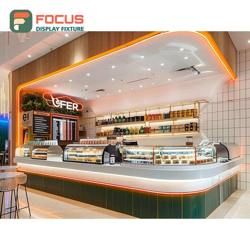 Premium Coffee Service Counter Front Checkout Pastry Shelf Matte White Cafe Counter Display