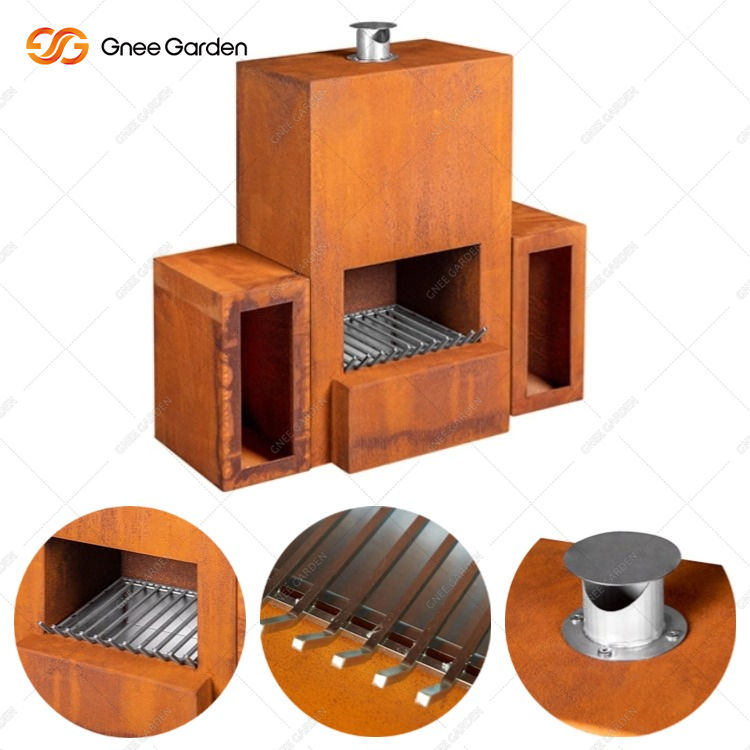 Premium Corten Steel Outdoor Fireplace Table with Log Racks Eco-Friendly Wood Burning for Patio & Garden Comfort