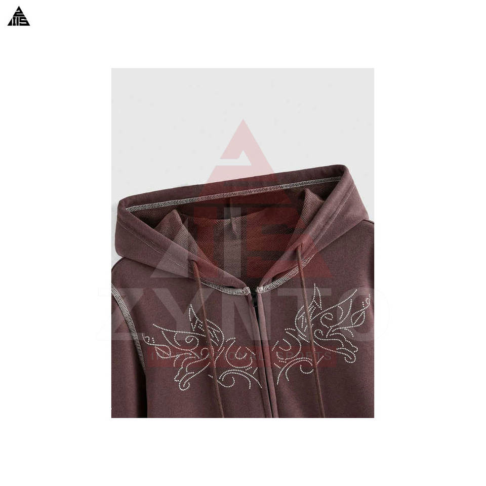 Premium Cotton Blended Rhinestone Hoodie For Men Basics Streetwear Custom Made Reflective Pullover Fashion Top Adjustable Fit