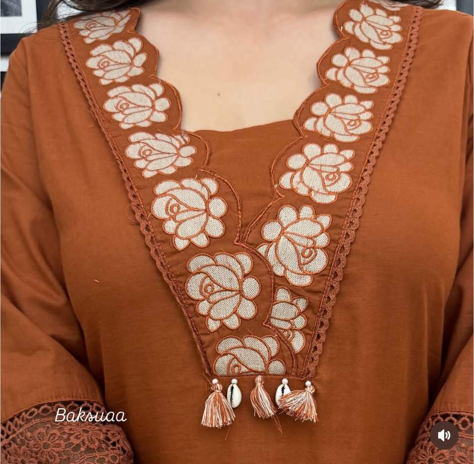 Premium Cotton Straight Kurta 3 Piece Set Womens Kurti with Pant and Dupatta Stylish Machine Print with Embroidery Work