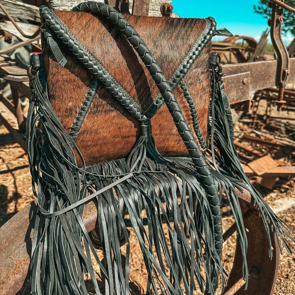 Premium Cowgirl Western Cowhide Hair on Women's Luxury Sling Bag With Hand Tooled Floral & Solitaire Design Ready to Stock Bags