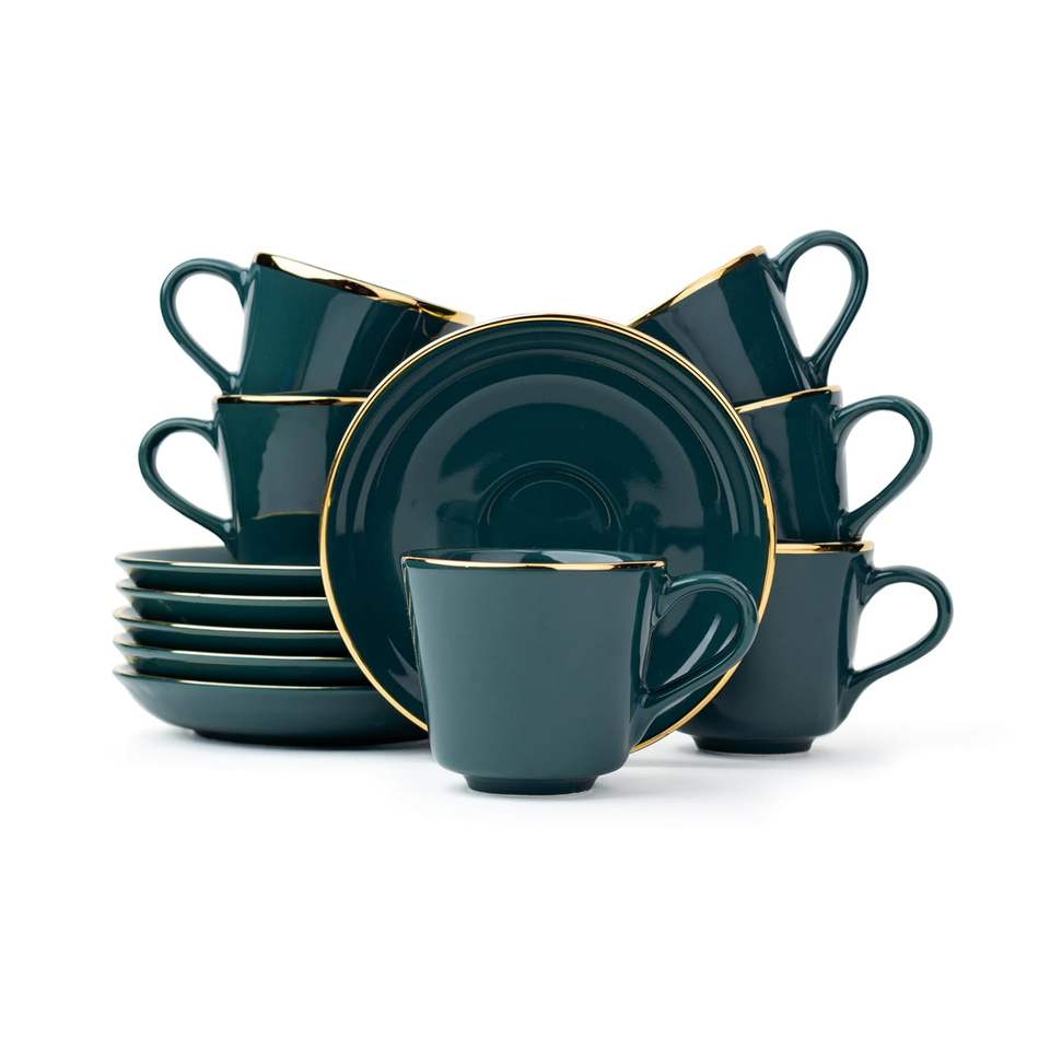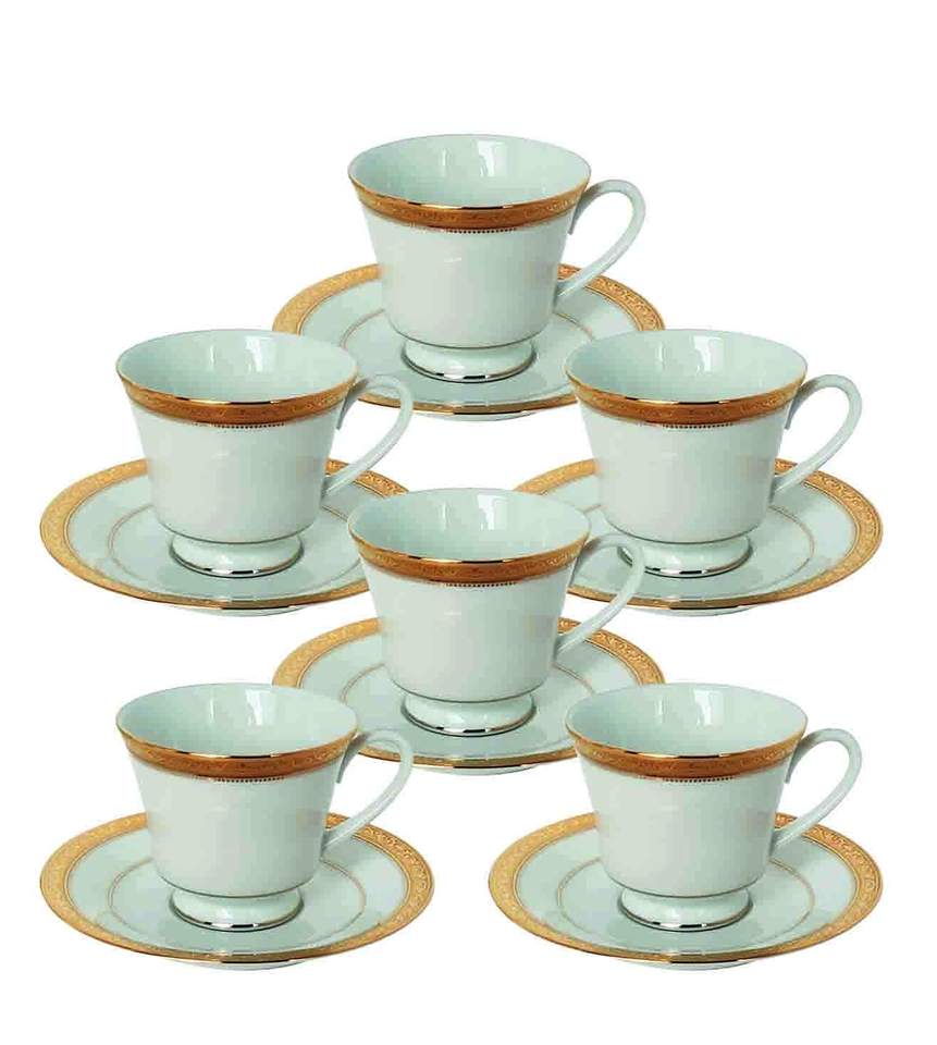Premium Cup & Saucer of 12 pcs Service for 6 Luxury Gold Tableware Dining and Kitchen Set Signature Cup & Saucer