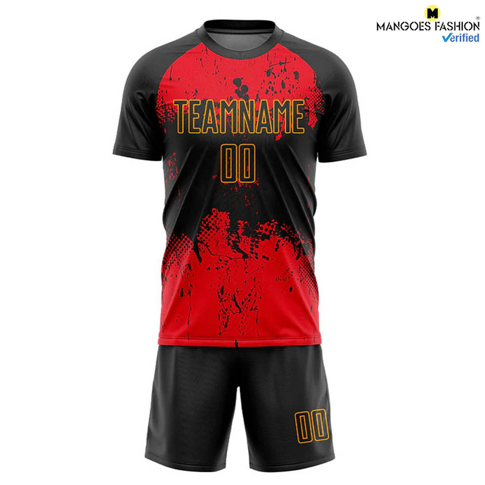 Optimal Comfort Durability Performance Premium Custom Black-Red Heat-Transfer Printed Soccer Jersey Moisture-Wicking Soccer