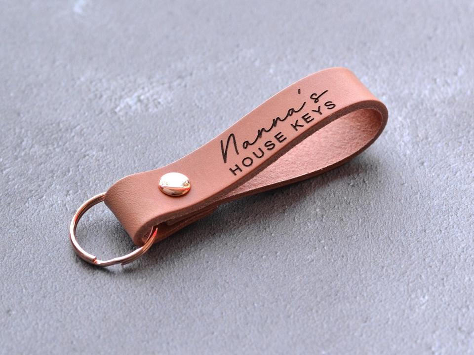 Premium Custom Engraved Leather Keychain LKCN-0002B Key Fob Loop Personalised Gifts for Dad Grandad Mum