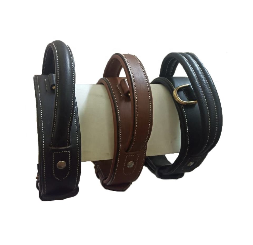 Premium Custom Logo Brown Eco-Friendly Dog Training Collar Solid Pattern Indian Leather Soft Padded Adjustable Rope Rivet for