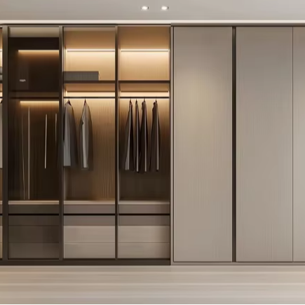 Premium Custom Modern Freestanding Walk-In Closet Luxury Wardrobe Glass Partition LED Lighting Bedroom Apartment Villa Home DIY