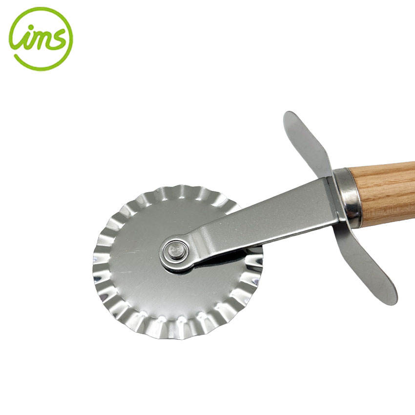 Premium Customized Stainless Steel Pizza Ravioli Cutter Wheel with Ash Wooden Handle Non-Slip Design