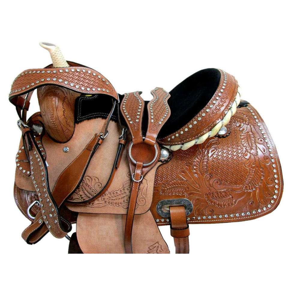 Premium D3 English Western Saddle Tack 14-18\" Genuine Leather Durable with Matching Leather Headstall Breast Collar Reins