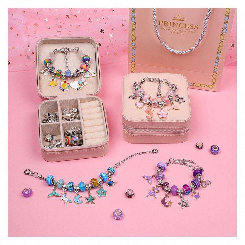 Premium DIY 66pcs Jewelry Making Toys Kit Stainless Steel Chain Cute Colorful Beads for Kids' Bracelet Charm Bracelet Crafting